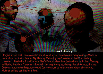 Wenn ich sehe das ich andere Menschen in meinem Verstand zu Charakteren degradiere die meinem Charakter scheinbar Über oder Unterlegen sind erinnere ich mich daran das es nur einen wirklichen Charakter gibst: Die physische Realität, Körperlichkeit die wir alle als Eins teilen (Creations Journey to Life: The only real Character)